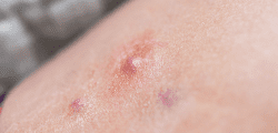 - Papules: Inflamed lesions that usually appear as small, pink bumps on the skin and can be tender to the touch.
