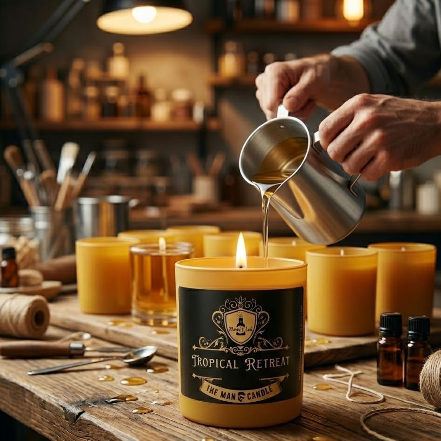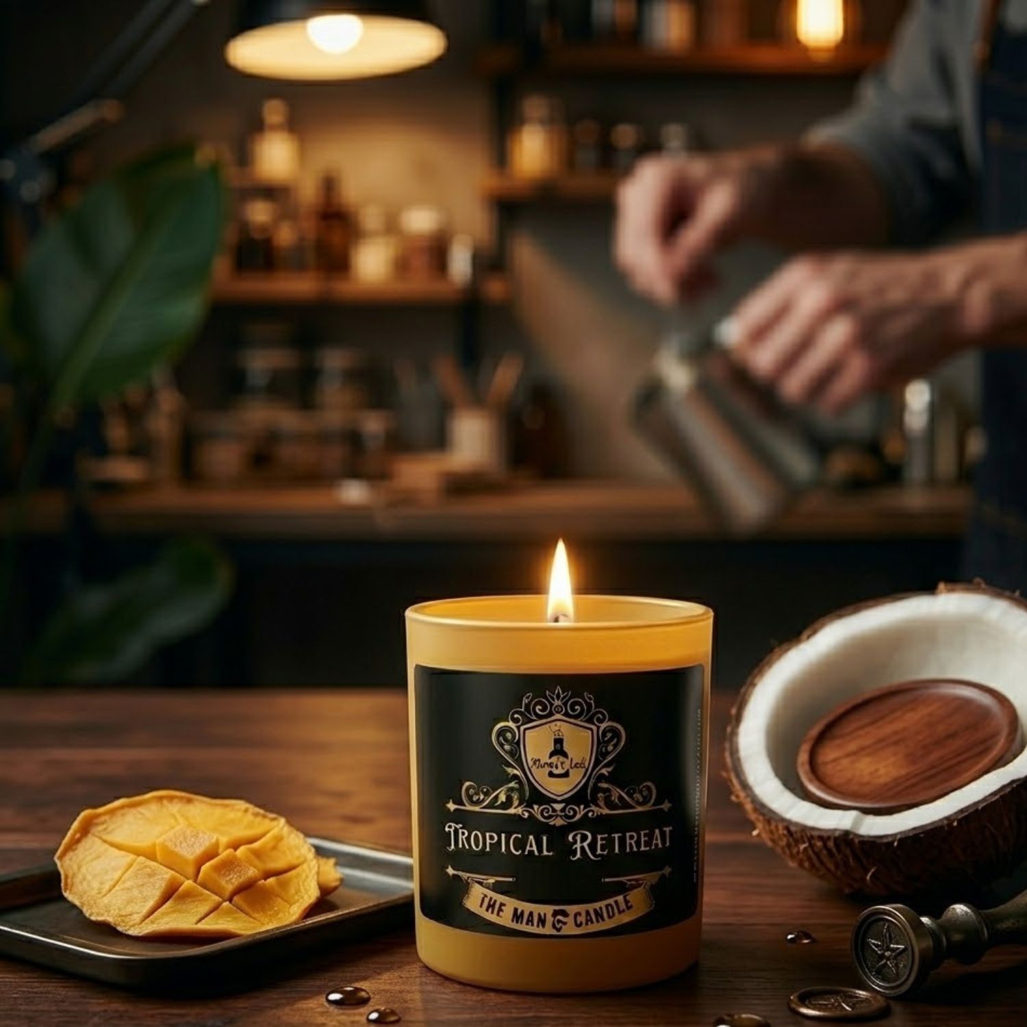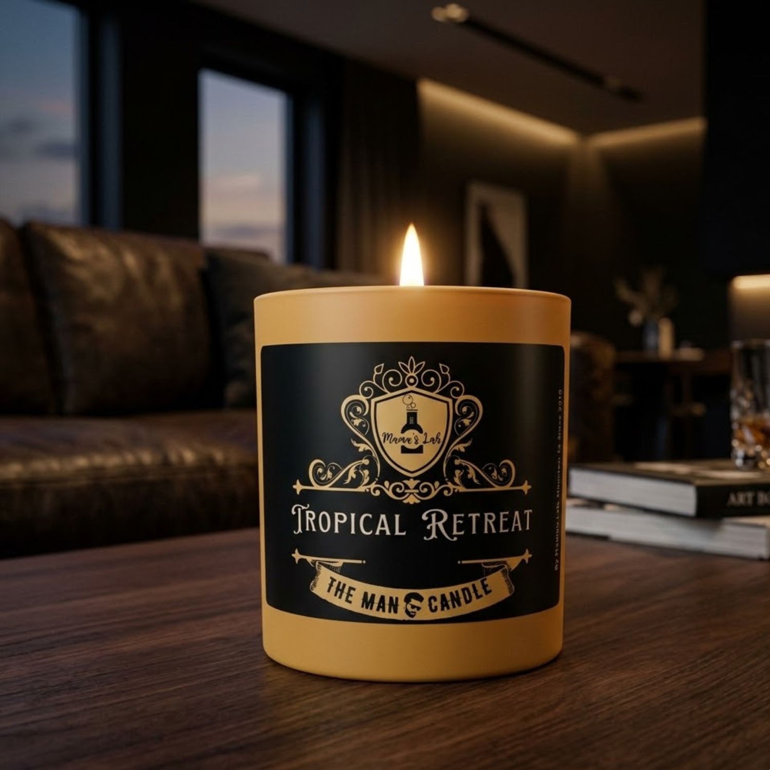 Bring a sophisticated tropical vibe into your space with the Tropical Retreat Men’s Candle by Mama’s Lab.